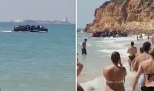 Turiștii aflați în vacanță pe plaja Barrosa de pe Costa de la Luz, în apropierea unui hotel de 5 stele din regiunea spaniolă Cadiz, au fost șocați să surprindă, practic, pe viu, invazia care se petrece în Europa, printr-o scenă care trimite către desantul unui comandou imamic pe litoralul unei țări invadate.