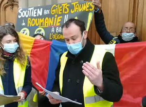 Declarație a colectivului «Gilets Jaunes Constituants» în fața ambasadei României adresată poporului român și Guvernului României