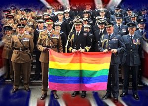 „Când liderii armatei terestre, marinei și forțelor aeriene britanice afișează cu mândrie steagul curcubeu, Putin și Xi tremură”…