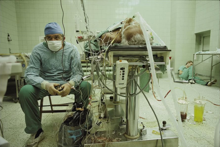 Fotografia surprinde un moment de după o intervenție chirurgicală ce a durat 23 de ore – un transplant de inimă. Gândiți-vă doar: 23 de ore de concentrare intensă, de tensiune în mâini, în picioare, în tot corpul – căci o singură greșeală putea costa viața pacientului. Iar pe atunci nu existau echipamente ultraperformante care să monitorizeze activitatea medicilor. Operația a fost efectuată de un specialist de excepție, renumitul chirurg cardiovascular polonez, Zbigniew Religa.