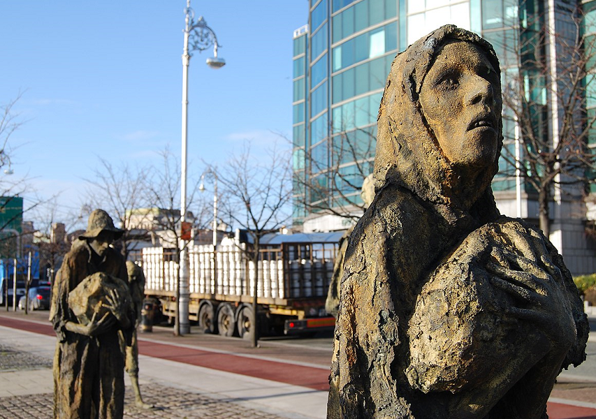 Un exemplu brutal este foametea din anii 1845-1852, cunoscută ca „Marea Foamete Irlandeză”, când peste un milion de irlandezi au murit, iar alt milion au emigrat. Deși foametea a fost cauzată de o boală a cartofului, criza a fost agravată intenționat de autoritățile britanice, care au refuzat să oprească exporturile de alimente din Irlanda și au văzut catastrofa ca pe o oportunitate de a „curăța” țara de săraci și rebeli. Răscoala de Paște a irlandezilor din 1916, Easter Rising, a fost reprimată brutal de britanici, forțele paramilitare ale acestora, Black and Tans, au terorizat așezările rurale și au comis incendieri, execuții și violuri. Churchill a urât Irlanda republicană, considerând independența un pericol pentru imperiu și a susținut ferm utilizarea Black and Tans împotriva populației civile. Tot el a considerat foametea irlandeză un „incident nefericit, dar inevitabil” și a susținut durerea cauzată de pierderea controlului britanic asupra Irlandei.